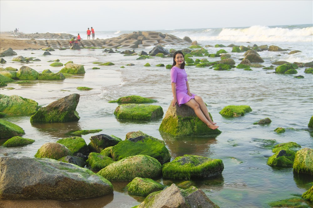 Thời gian gần đây, rất đông các bạn trẻ đổ về bãi đá kè biển ở Xóm Rớ, phường 7, TP Tuy Hòa (tỉnh Phú Yên) để chụp hình và chiêm ngưỡng vẻ đẹp đầy mê hoặc của rêu phong do thiên nhiên ban tặng.