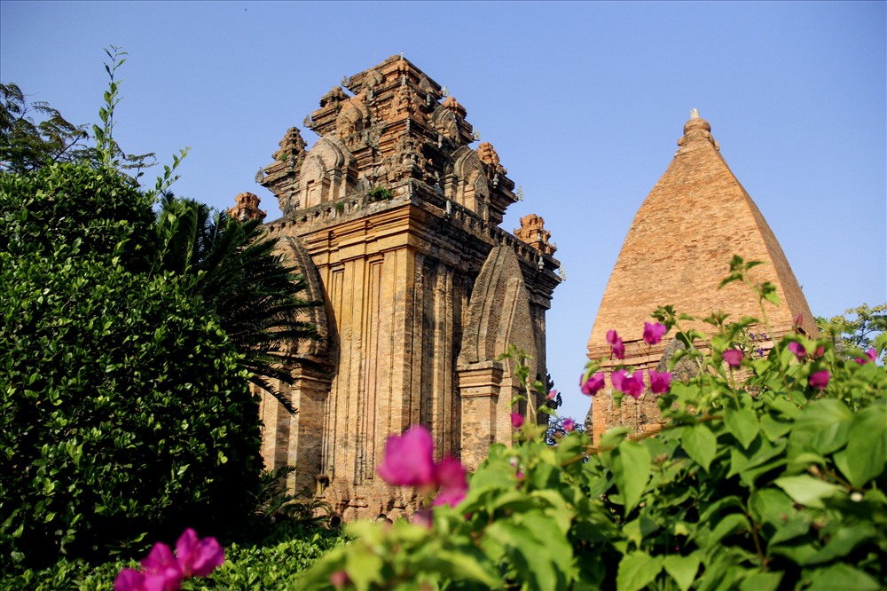 Sau sân nền có 32 ngọn tháp xây bằng gạch và đá là nơi cất giữ xá lị của các nhà sư từng trụ trì ở đây, phần lớn được dựng vào thế kỷ 17. Ngọn tháp lớn nhất là Tháp Phổ Quang, cao 5,10 m gồm đế, khám thờ, hai tầng diềm và mái mui luyện với chóp tròn.