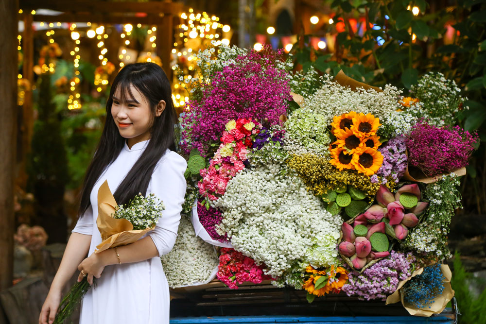 Thu đến dọc phố Phan Đình Phùng là những chiếc xe hoa chở đầy sắc thu khiến người người từ mọi nơi đổ về để chụp ảnh. Nhiều người còn cho rằng đến con phố này vào mùa thu thì chỉ cần đưa máy lên là có ảnh đẹp.