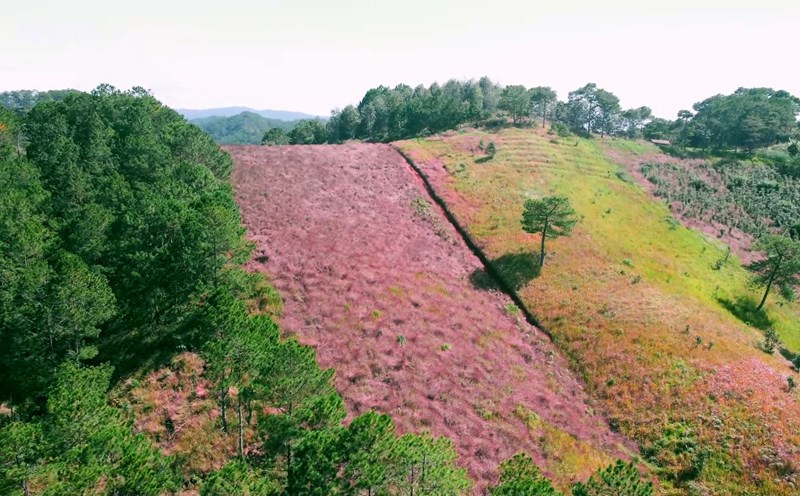 Lan Trần cho biết: "Hiện tại kiểm lâm đã chặn lối đường mòn đến Cây thông nên mình phải đi thuyền chở qua check-in với cây thông và đồi cỏ hồng".