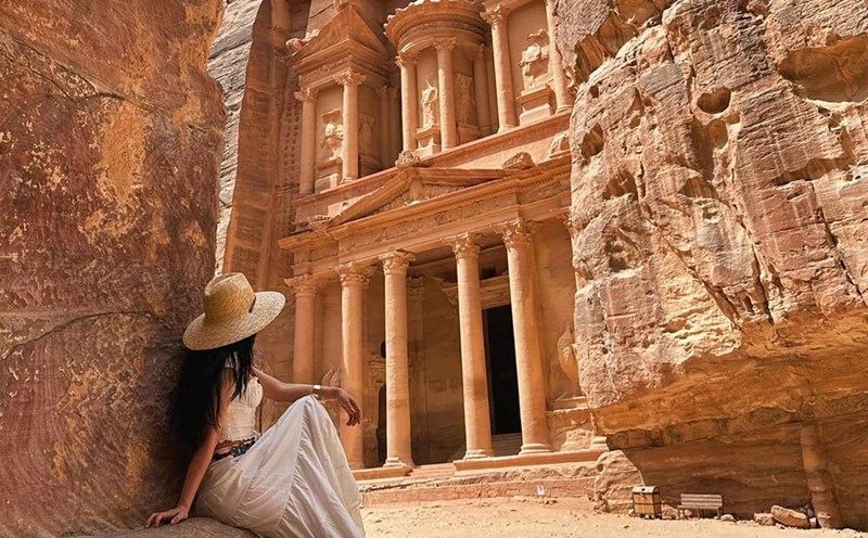 Visiting Jordan in August, Ms. Nguyen Phuong Hang (Hanoi) remembered most the days wandering in the Wadi Rum desert, experiencing riding a jeep, watching the sunset, sleeping overnight in the desert...
