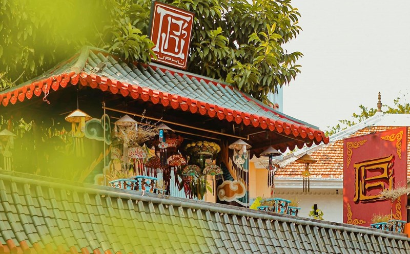 Tầng 1 có rất nhiều chậu sen đá nhỏ xinh, với hồ nước thả đàn cá Koi đủ màu sắc. Tầng 2 mang âm hưởng Đà Lạt, có góc ban công nhìn xuống phố đi bộ được rất nhiều bạn trẻ check in.