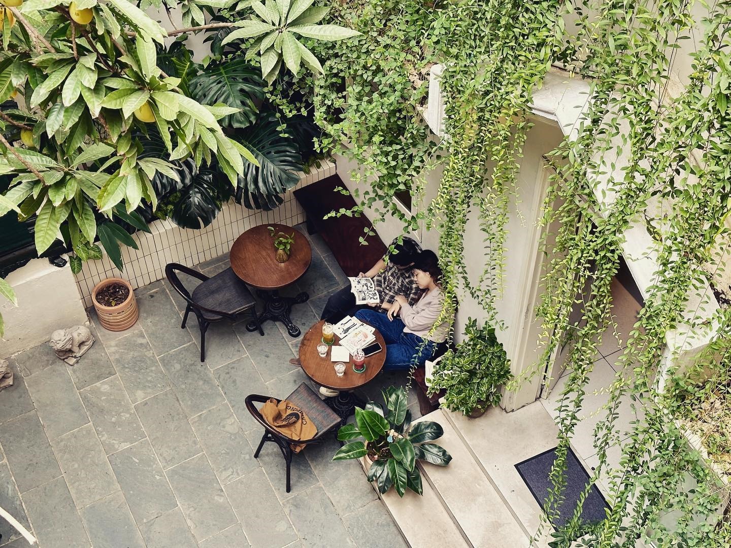 Đặc biệt, khu vực ban công được chăm chút tỉ mỉ với nhiều cây leo xanh ngát phủ kín, làm mềm mại hơn những bức tường, khoảng hiên bê tông khô cứng. Ghé quán, bạn sẽ có cảm giác như đang lạc bước về "góc sân khoảng trời tuổi thơ", với biết bao kỉ niệm chợt ùa tới.