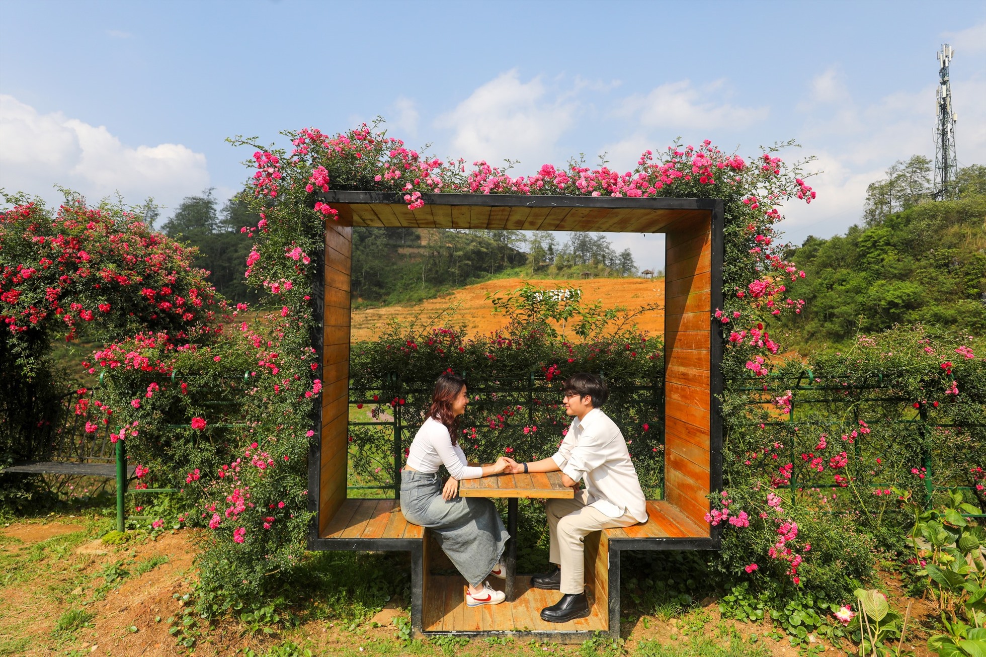 Thung lũng hoa hồng trên đỉnh Fansipan đang độ nở rộ, điểm tô sắc màu rực rỡ lên bức tranh mùa thu đẹp xiêu lòng ở Sa Pa.