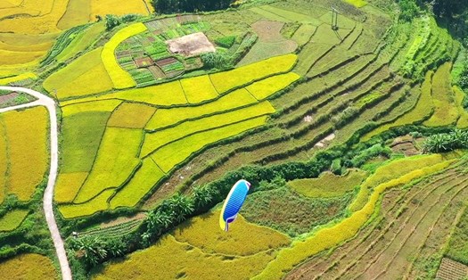 15h00, đoàn lên xe trở về Hà Nội. Trên đường đi, chị Nhung cùng đoàn tranh thủ check-in cùng ruộng bậc thang đang mùa lúa chín.