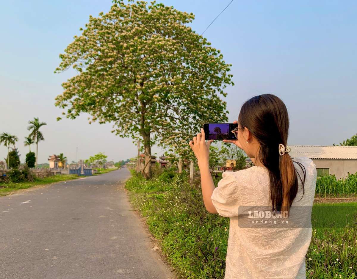 Hung Yen - March comes, rice flower trees in Hung Yen villages simultaneously bloom, dyeing a corner of the sky red.