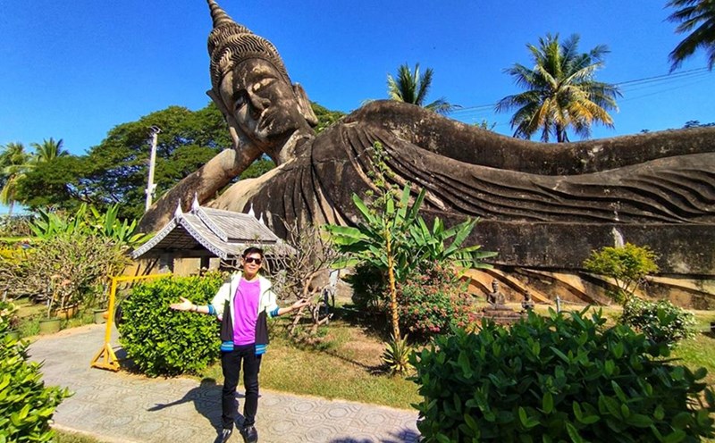 In Vientiane, Cong Hoang only visited the Buddha statue garden because most of his schedule was spent in the ancient capital of Luang Prabang . With more than 200 Hindu and Buddhist statues with many different shapes and meanings, Wat Xieng Khuan Buddha statue garden is located about 24km from the capital.