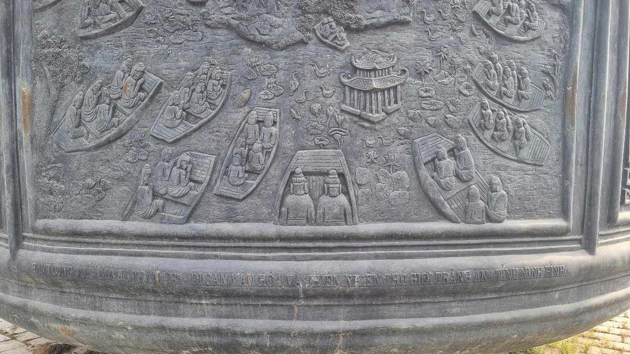 The main face of the bronze caldera is carved with images and information about the life and career of Zen Master Nguyen Minh Khong (in Vietnamese, English and Chinese).