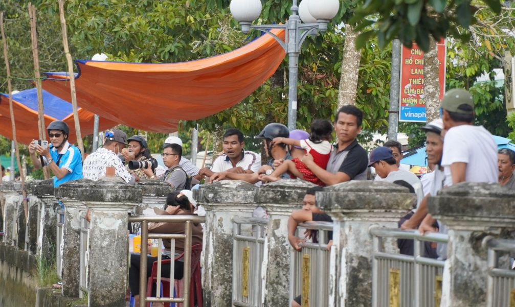 Although the festival had not yet been held, many people came to cheer for the boat teams. Mr. La Hoang Linh, a Khmer person who carries construction materials, shared: "I go out to see it every day. Boat racing is a joy, an identity, and the blood of our Khmer people".