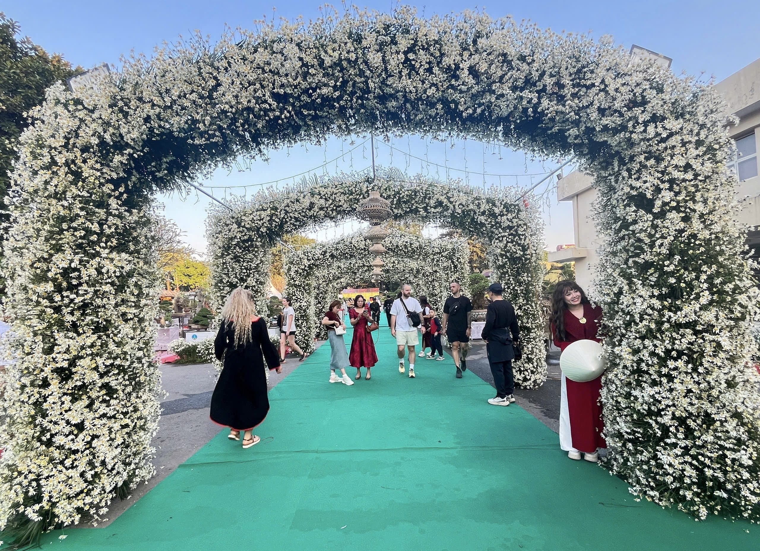 In particular, the daisy flower road is designed with pure white flower arches, fragrant with the gentle fragrance, becoming a highlight in the Festival space. Zucchini is a familiar flower to Hanoians and tourists, blooming in late autumn and early winter, captivating people with its gentle beauty.