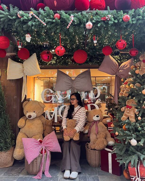 Not only inside the shops but also outside the 100m long alley has been decorated splendidly, sparkling with the typical red and green of Christmas. Outside, many stores are even "heavily" investing in decorating large pine trees, large teddy bears and Christmas accessories such as balls, candy, ice cubes... following the current trend.