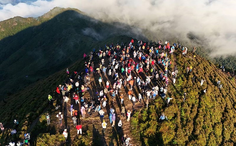 In Dien Bien, with its high mountainous terrain, many valleys and large temperature differences between day and night, it is an ideal condition for seas of clouds to appear. In addition to Tang Quai Pass, visitors can also hunt clouds at Chop Ly Peak, Keo Lom Commune, Dien Bien Dong District. Or Pha Din Pass - one of the "four great mountain passes" of the Northwest region.