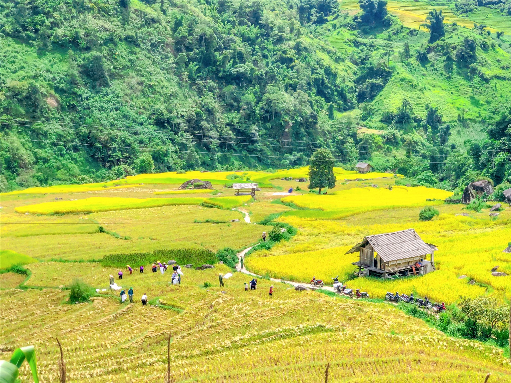 Mùa thu Sa Pa khiến người ta xuyến xao vì tiết trời mát lạnh, bầu trời xanh cao trong, ánh nắng chan hòa trên khắp những thung lũng, như rót mật vàng trên những thửa ruộng bậc thang nối nhau tít tắp. Dù mùa thu hoạch năm nay ở Sa Pa đến sớm và bà con đã gặt gần xong những thửa ruộng lúa trĩu bông, thì dịp Trung thu, du khách vẫn có cơ hội ngắm mùa vàng “giờ chót” nơi thung lũng Mường Hoa. Dạo bộ dọc trên những con đường nhỏ quanh co nơi bản làng, hít đầy lồng ngực hương lúa chín thơm lẫn trong mùi khói lam chiều, bắt gặp những giọng cười tíu tít của bà con nơi bản làng, không khỏi khiến người ngắm nhìn dâng tràn cảm xúc hân hoan, yên bình đến lạ.