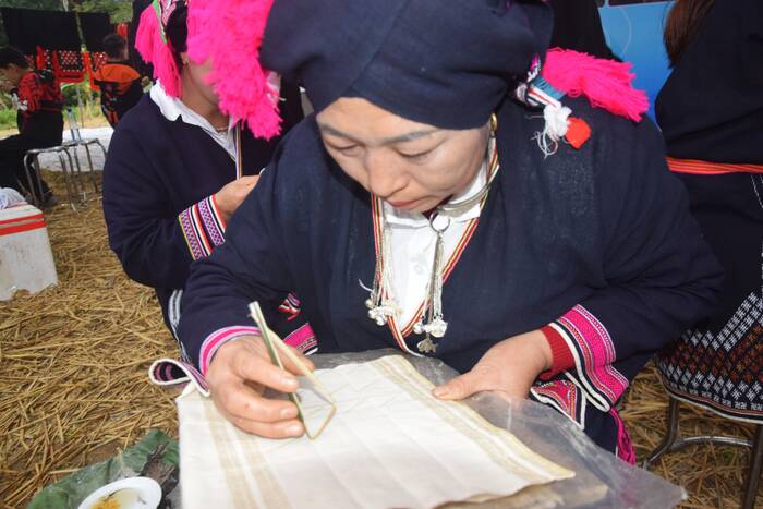 In the Moc Chau and Van Ho areas, many Dao Tien women still maintain the craft of painting with beeswax on fabric. Ms. Trieu Thi Huong, Van Son ward, said that painting with beeswax is the most difficult stage. The painter must maintain a stable temperature and firm hands. If the wax cools down or hands tremble, the strokes will be broken.