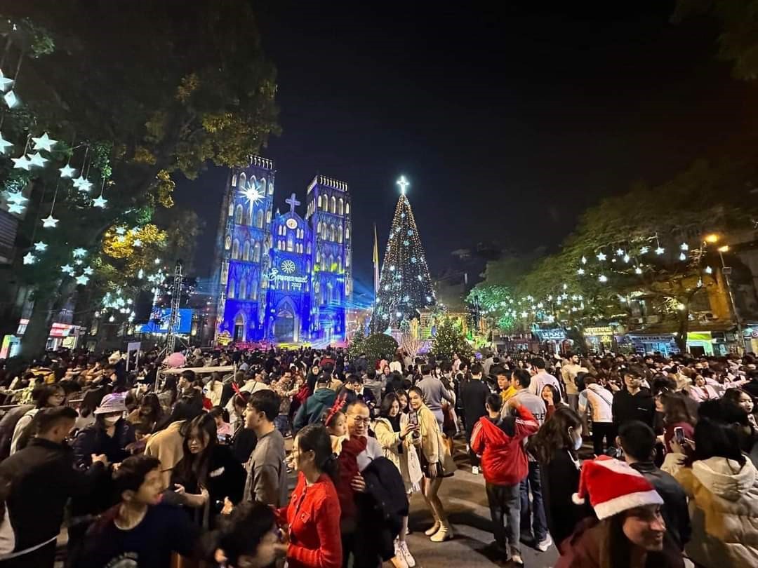 Đêm Giáng sinh, người dân khắp nơi đổ về trung tâm Hà Nội, dạo chơi tại các nhà thờ, trung tâm thương mại... đường phố trở nên đông đúc, nhộn nhịp hơn hẳn ngày thường.