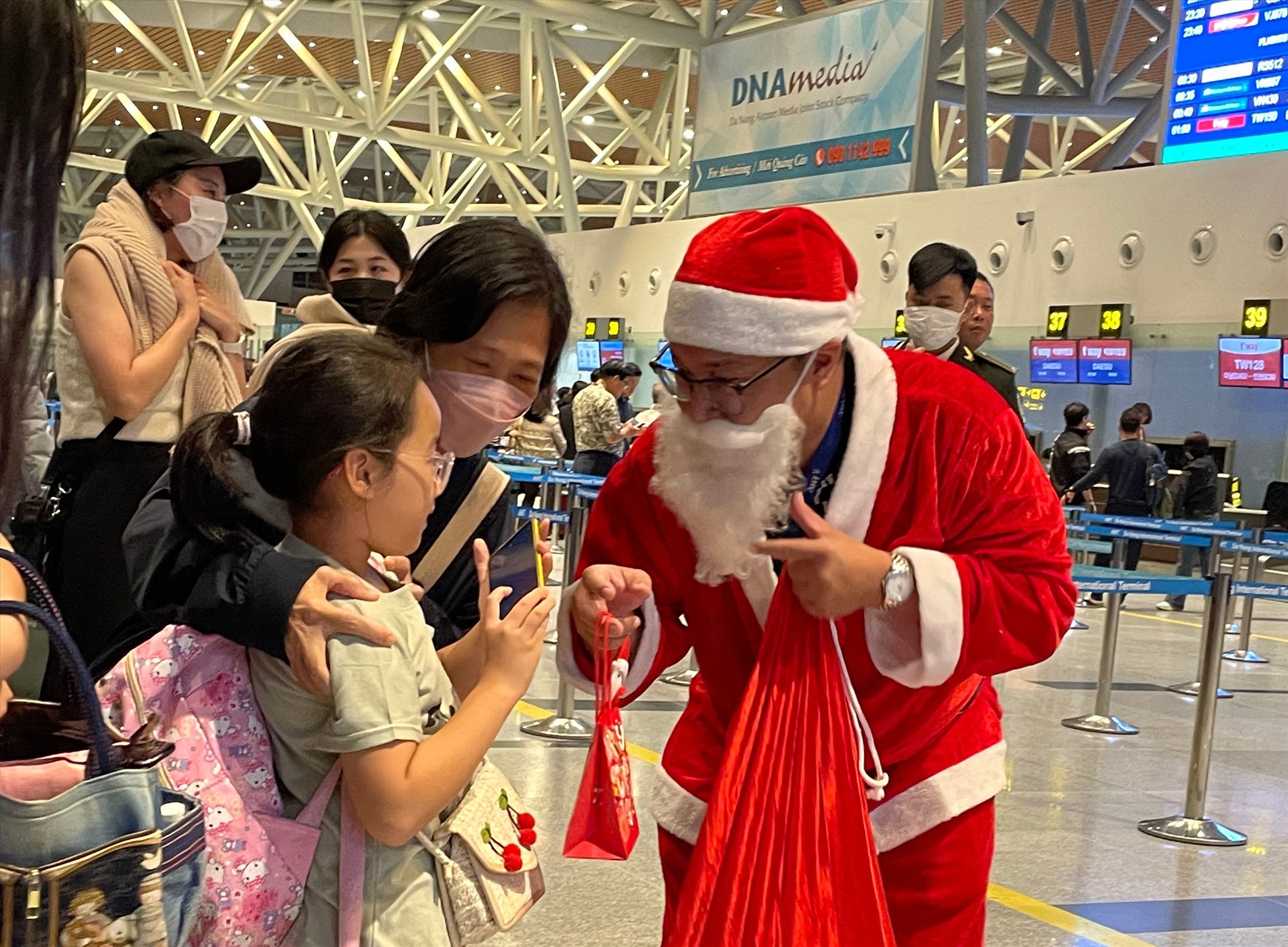 Tối ngày 24.12, Nhà ga Quốc tế Đà Nẵng đã mang đến trải nghiệm giàu cảm xúc cho du khách với chương trình đón Giáng Sinh bất ngờ tại sân bay. Nhiều hành khách bất ngờ với sự xuất hiện của ông già Noel đi phát quà cho mọi người.