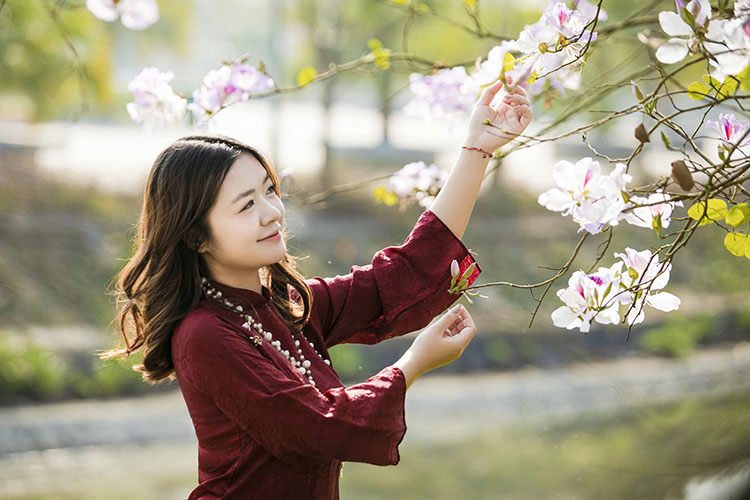 Besides the colorful spring flower markets, the roads shaded by white ban trees are now becoming check-in points attracting a large number of young people and tourists. Everyone wants to take the opportunity to capture beautiful and memorable moments of a ban blooming season during Tet.