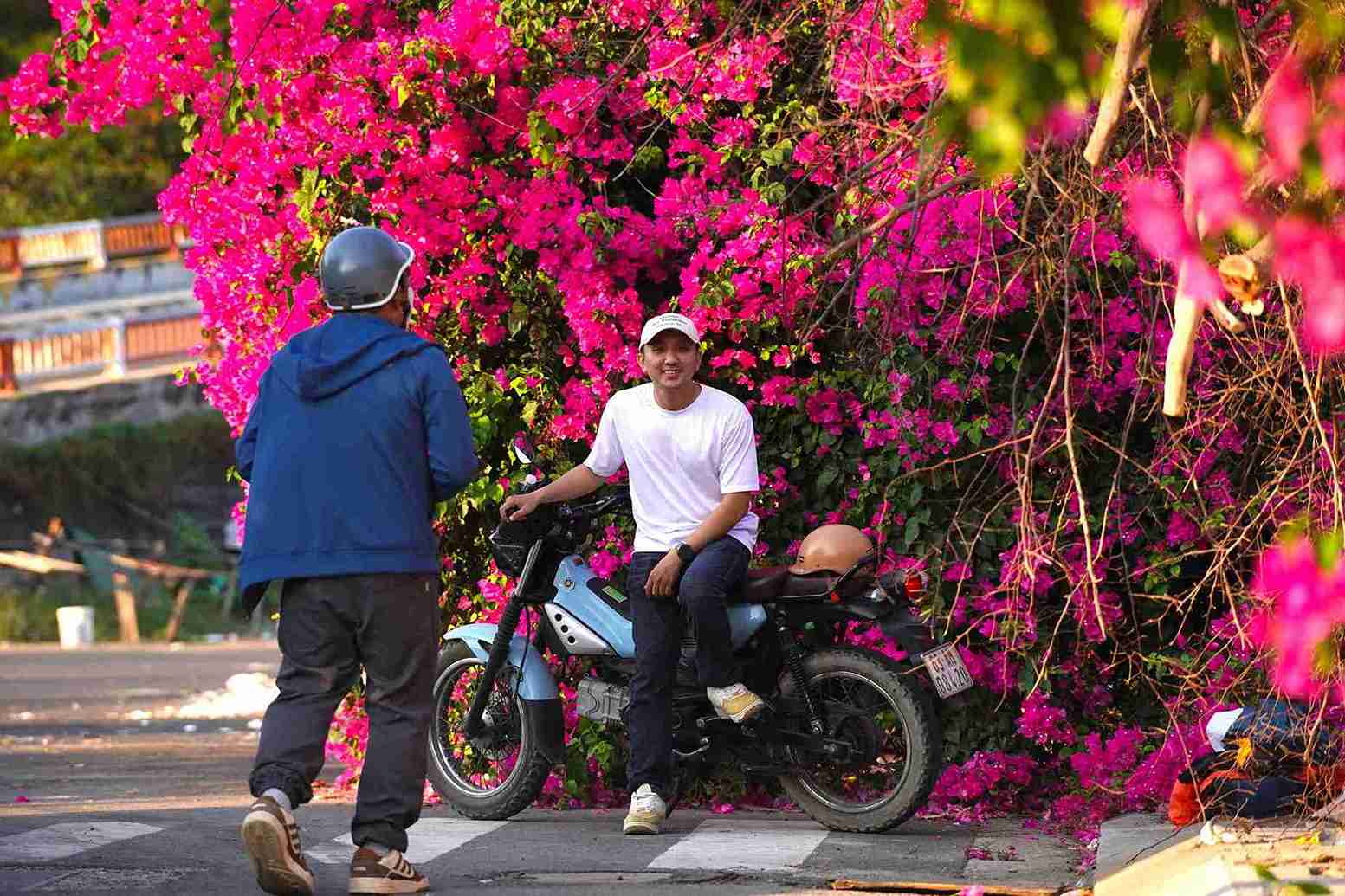 For tourists from other places, this bougainvillea flower street also brings a feeling of surprise.