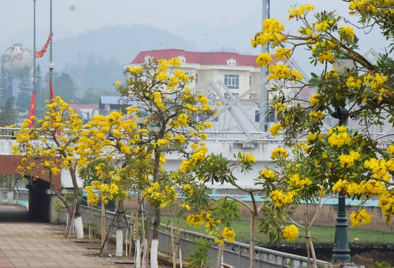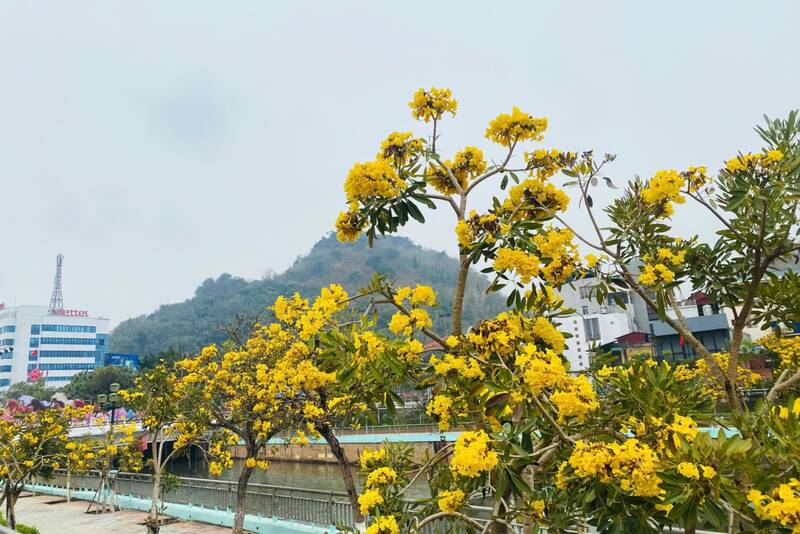 Not only along the embankment of Nam La stream, phong linh is also grown in many places such as Uncle Ho's fish pond, Khau Ca hill, Ket Nuoc slope, To Hieu street. The yellow color of phong linh combined with the white color of ban flowers makes Son La mountain town in March even more brilliant and romantic.