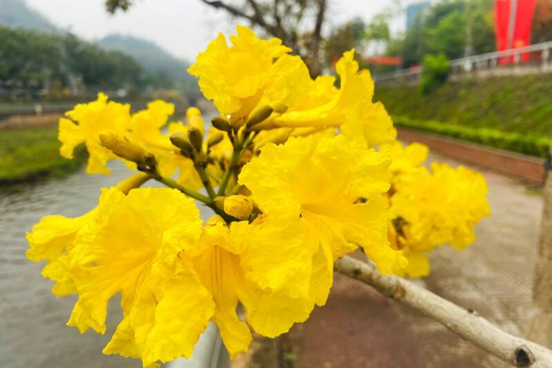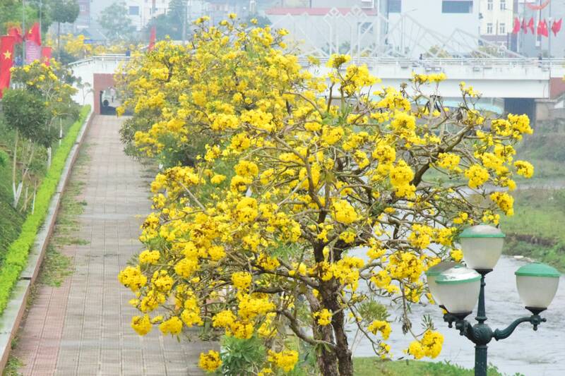 Flowers usually bloom profusely from March to April, when they bloom, covering the branches, creating prominent yellow patches. Many clusters of flowers are thick, attracting bees and butterflies, making the space more lively.