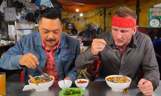 Many foreign tourists enjoying Vietnamese street specialties have been excited by the long-standing culinary culture of the local people.