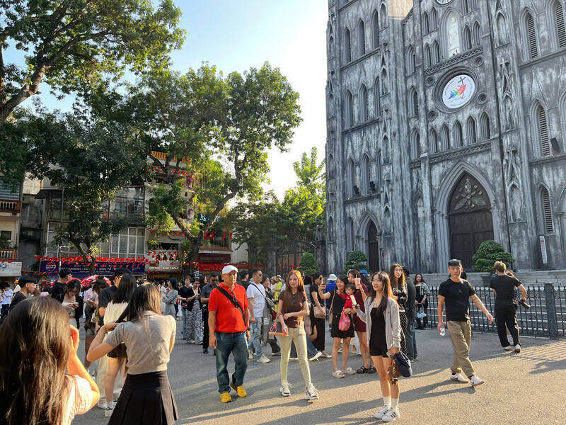 In addition to the Great Church, visitors can visit Cua Bac Church, Phan Dinh Phung Street with a row of ancient trees and colorful flower stalls, or the area around Hoan Kiem Lake, Thang Long Imperial Citadel, Hanoi's Old Quarter... - ideal destinations to enjoy a truly poetic autumn with many beautiful memories.