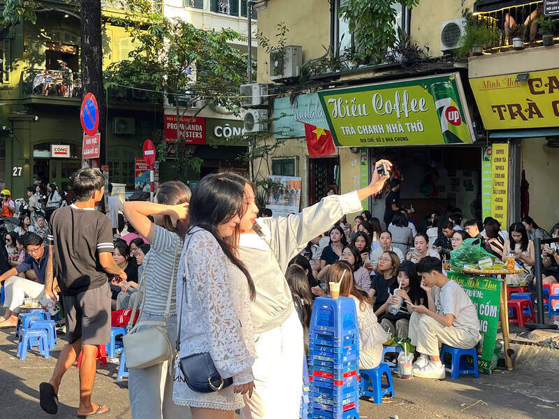 Phan Khanh Huyen (Hanoi) and her friends came to check-in at the Cathedral because it has become a familiar destination every fall. The lemon tea, coffee, restaurant complex... around the church is a famous entertainment spot for young people.