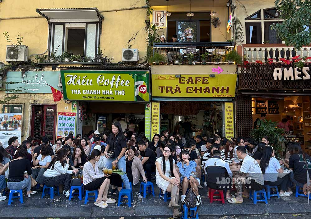 On busy midweek days, it seems like Hanoi Cathedral will be deserted. But when the cold air arrives, the blue sky and sunshine return to the sky of Hanoi, bustling with tourists and young people coming here to check-in, take photos and enjoy sticky rice, sticky rice, stir-fried rice...