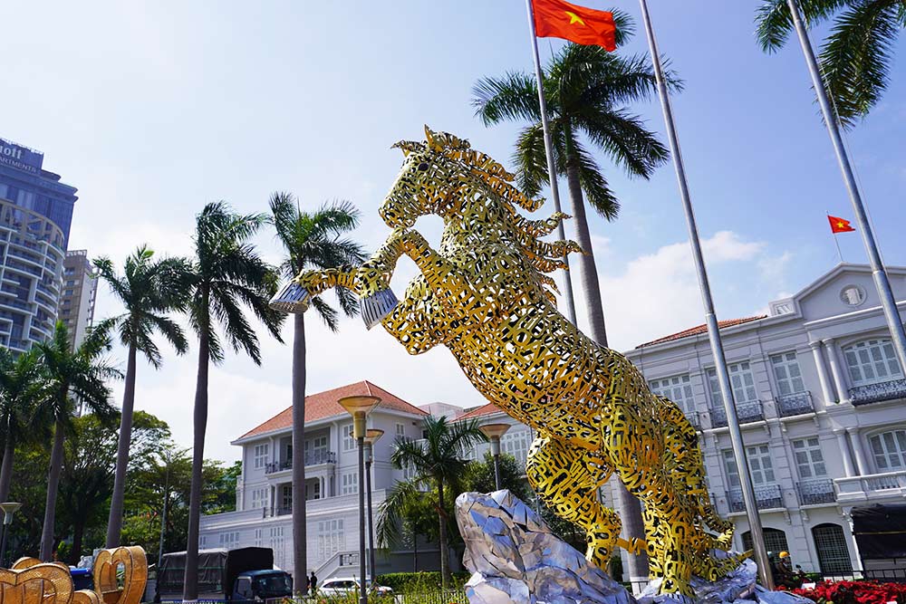 The work has an impressive scale with a height of up to 4.3m and a length of 5.1m, a base width of 2.6m. The machine horse has a contemporary shaping style with angular and strong lines. This image symbolizes the spirit of speed, adaptability as well as the leading will of the city in the digital transformation revolution.