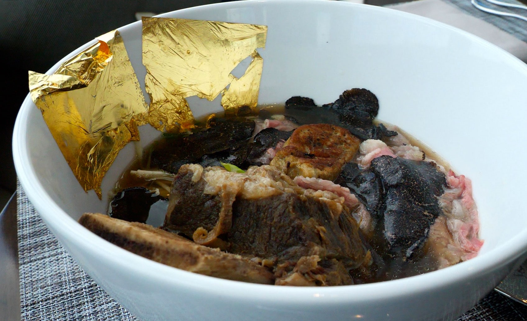 Người đẹp gốc Thái gọi phở bò trong nhà hàng ở sân bay. Menu nhà hàng có giá từ khoảng 60.000 đến 130.000 đồng, gồm các món phở bò, gỏi cuốn...