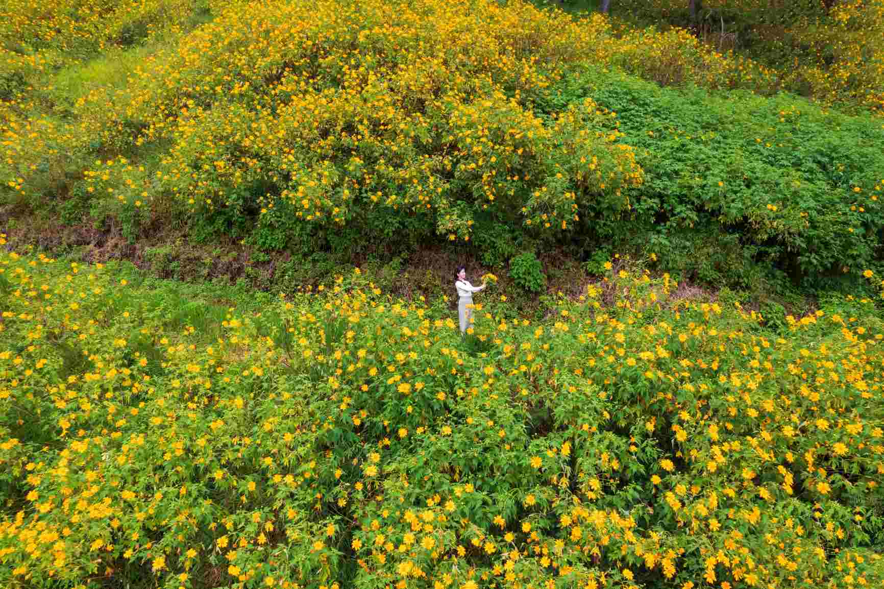 The roads along the hills, through villages such as Pa Phach, Ang village, or Hua Tat pass, are all covered with yellow wild sunflowers, creating a dreamlike route in the eyes of photographers and tourists who love to travel.