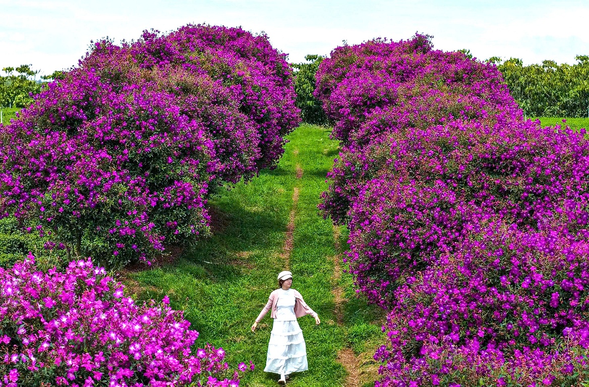 A company representative said that these flower trees were planted more than 10 years ago along the farm bank. This is a purple flower variety imported from Australia, with the scientific name Melastoma candidum D.Don.