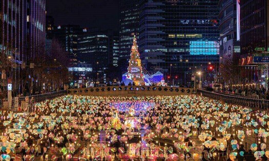 The pine tree is lit up at night, lighting up a corner of the sky and becoming an attraction for thousands of visitors.