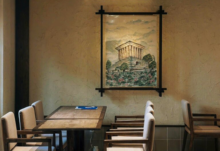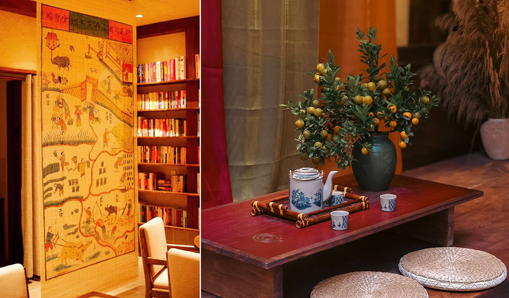 The shop owner said that the design idea originated from positioning Vietnamese tea and agricultural products. The space tells a cultural story, creating a familiar feeling with the older generation, and at the same time helping young people better understand the old lifestyle through 5 artworks recreating the life and agriculture of the North.
