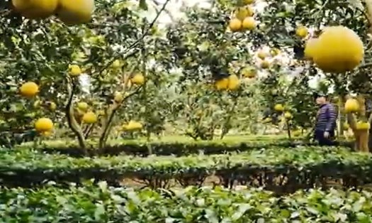 The vast grapefruit garden, sparsely populated with chickens and ducks, Mr. Dung released more. Most grapefruit trees in the garden are blooming, pure white covers the entire tree, giving off a filling and pleasant scent, when standing nearby, you can feel the scent mixed with the charm. "On sunny days, the scent of grapefruit flies further, which is also a favorable condition for the flowers to easily produce fruit when fertilizing," Mr. Dung added.
