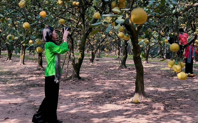 Then the flower season ended, in the sunlight, there was no more smell of grapefruit, the young fruit appeared, as small as a crab, as dark green as leaves. Every day, the weather and rain are dry enough, through the red fabric ripening season in Hai Duong and Bac Giang, through the sweet and creamy longan season in Hung Yen, it is the ripe grapefruit season. This is the happy season for grapefruit growers, each grapefruit tree can produce hundreds of fruits, people are busy harvesting.