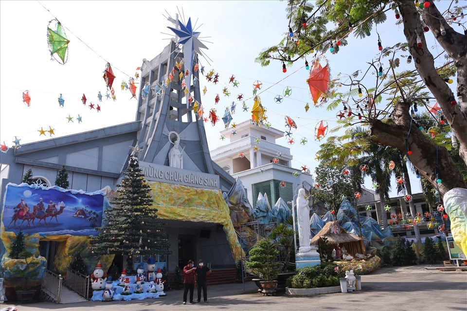 Năm nay, tại một góc đường của xóm đạo được bài trí một cây thông Giáng sinh khổng lồ.Nhiều người dân đến đây để chụp ảnh và tham gia một số hoạt động vui chơi.Dưới cây thông khổng lồ còn có các trò chơi cho trẻ em.Cây thông nhìn từ bên ngoài được phủ bằng mảng xanh và trang trí thêm đèn chùm.Bên xóm đạo, còn có nhiều nhà thờ lớn. Vào dịp Giáng sinh, nơi đây mở cửa để người dân đến chụp ảnh, đi lễ, cầu nguyện.Dọc hai con đường ở xóm đạo thường được trang trí nhiều hang đá cỡ lớn.Người dân đổ xô đến chụp ảnh, giao thông nhiều chỗ bị kẹt xe.Nhiều gia đình cho con trẻ đến chụp ảnh trước hang đá.Không khi Giáng sinh ở khu xóm đạo rộn rã.Ngoài ra còn có một số hoạt cảnh, ca nhạc trong những ngày cận kề Giáng sinh.Một số người tranh thủ bán các mặt hàng Giáng sinh, bong bóng bay.Hai bên tuyến đường được người dân gắn đèn.Trước các nhà thờ đều có người đến để chụp ảnh. Ảnh: DiPY.