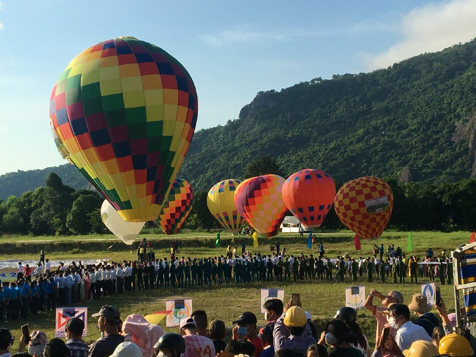 Đứng từ chùa Pà Tạ, bạn còn có thể ngắm toàn bộ cảnh quan thị trấn Tri Tôn, các ngọn núi như Núi Cô Tô, Núi Cấm, Núi Dài và những cánh đồng xanh tươi bất tận.