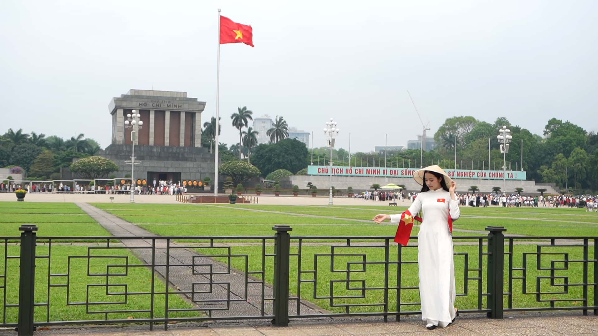 Ms. Tran Ngoc Diem (tourist from Ho Chi Minh City) shared that this trip to Hanoi coincides with a major holiday, so she prepared ao dai costumes to take photos at Uncle Ho's Mausoleum.