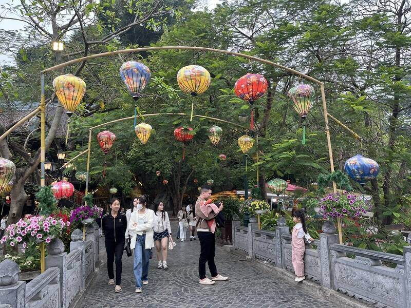 According to Lao Dong's records in Hoa Lu ancient town, a large number of tourists flock to entertainment spots in the first days of the new year.