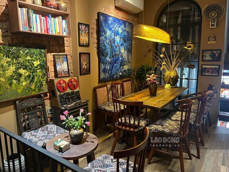 Paintings, ceramics and decorations are neatly arranged, creating an abstract whole, imbued with personal imprints. In the bustling Old Quarter, the restaurant evokes nostalgia for old Hanoi, and at the same time makes guests feel like they are enjoying a colorful and inspiring "visual feast".