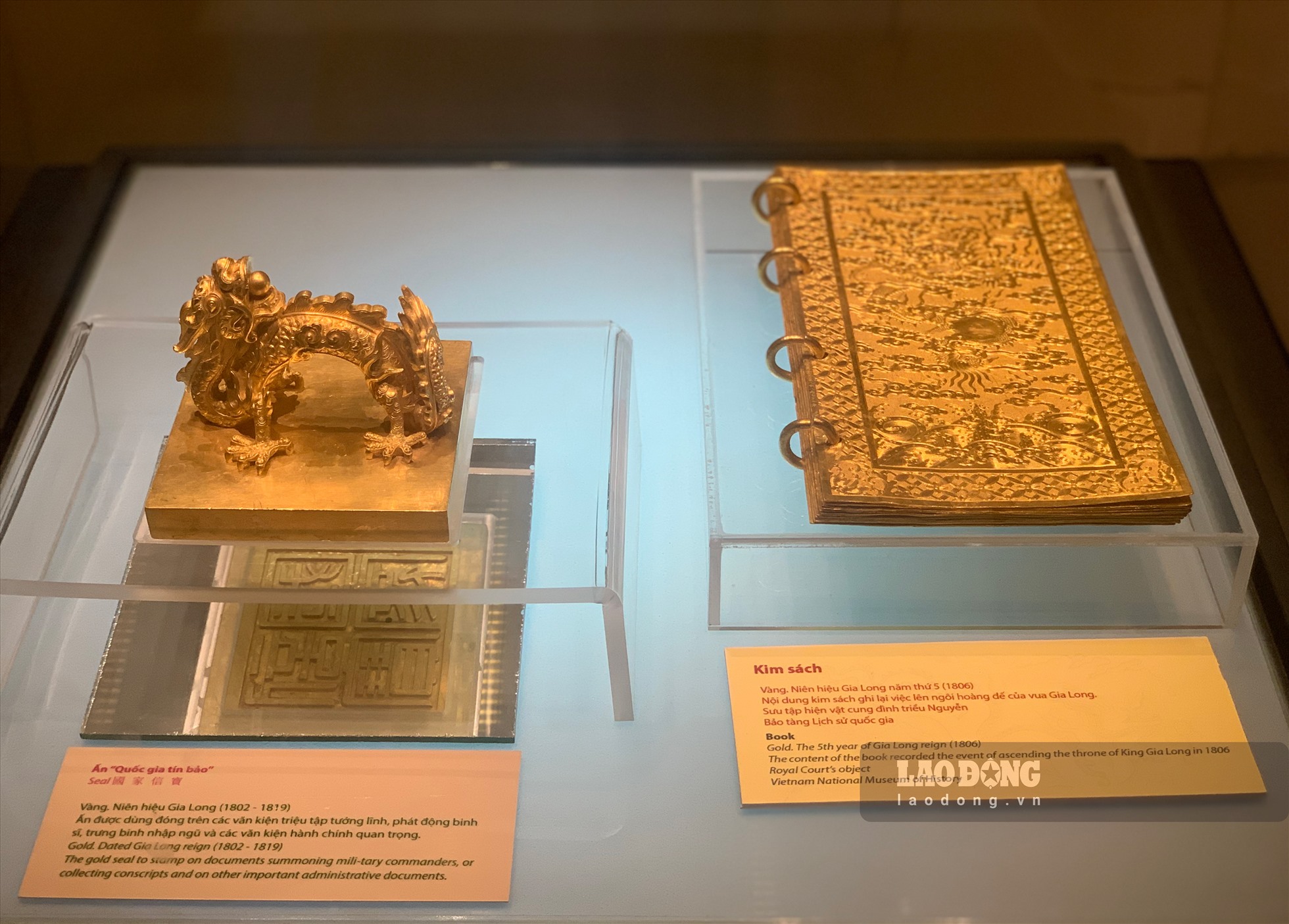 Kim sách bằng vàng Niên hiệu Gia Long thứ 5 (1806), với nội dung ghi lại việc lên ngôi hoàng đế của vua Gia Long. Đây là một trong bốn quyển sách vàng được đặc biệt quan tâm trong hòm rương 26 bản sách vàng của triều đình.
