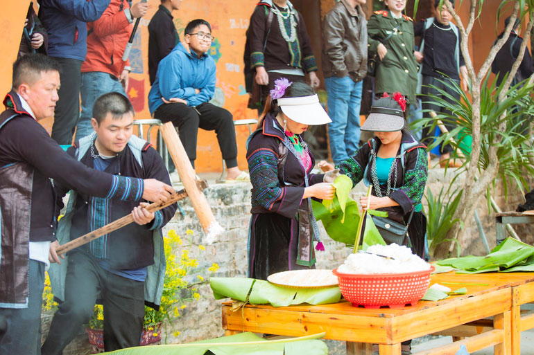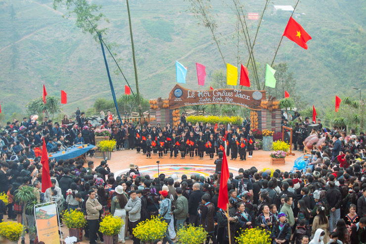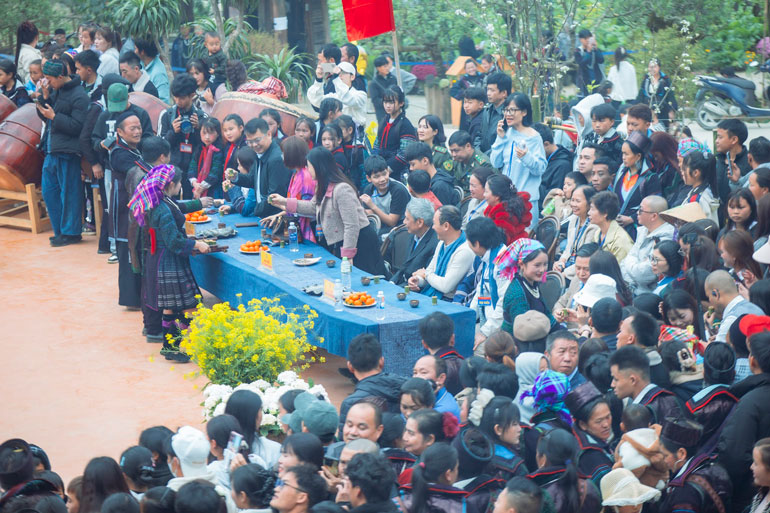 The festival is held at the famous Cat Cat tourist area, in the Sa Pa area. The ceremony part takes place solemnly in the area where the Neu tree is erected - a sacred symbol, associated with the spiritual life of the H'Mong people during Tet and the New Year festival.