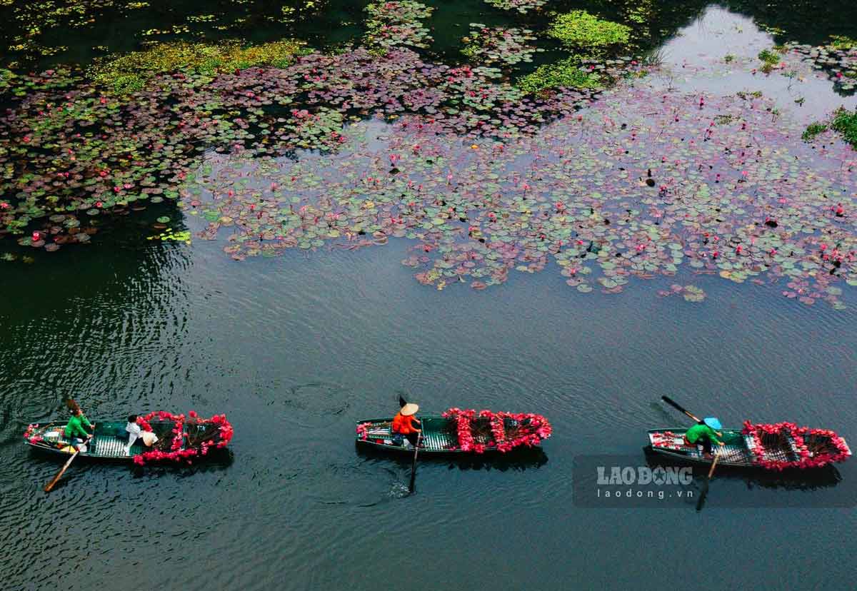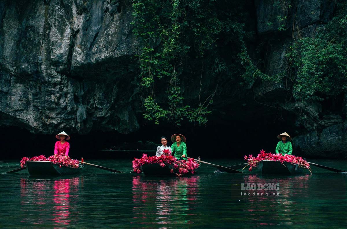 Ninh Binh - At this time coming to Tam Coc - Bich Dong, visitors will be immersed in the beauty of the blooming guns on both banks of the Ngo Dong River.