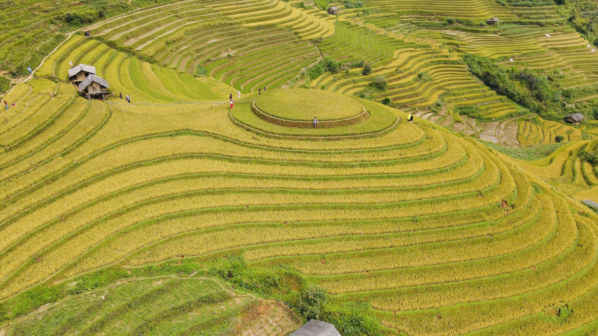 Đầu tháng 10, lúa đã chín trên các ruộng bậc thang Mù Cang Chải, Yên Bái. Du khách tranh thủ tới đây tham quan, chụp ảnh check in trước khi kết thúc mùa vàng.