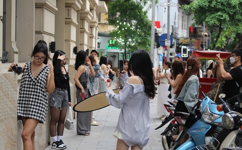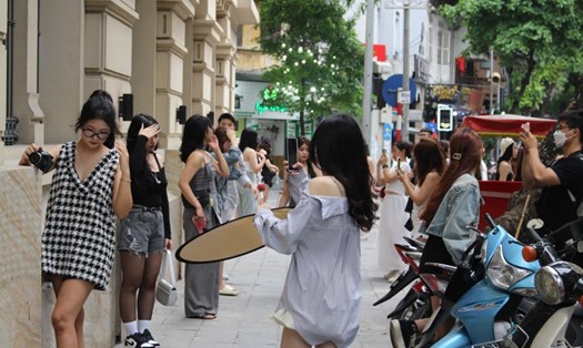 Nơi đây có không gian vỉa hè rộng rãi, khung cảnh thơ mộng nên đã thu hút được rất đông người dân tới chụp ảnh, đặc biệt là phái nữ.