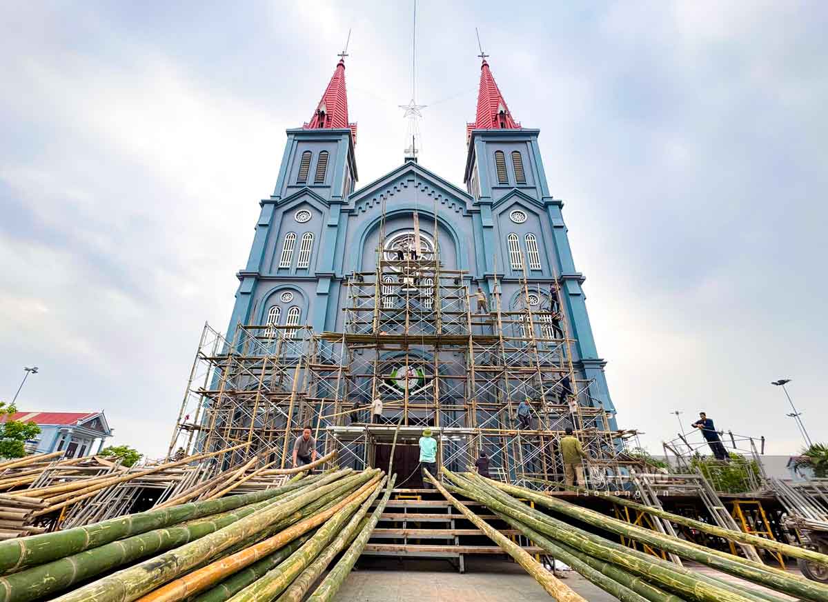 Ninh Binh - On Christmas, churches in the province are decorated splendidly, sparkling with colors from LED lights.