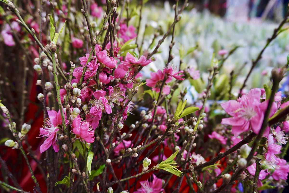 Cận Tết Nguyên đán, nhiều tiểu thương tại các khu chợ hoa ở TPHCM nhập lượng lớn hoa đào, tuyết mai từ miền Bắc về bày bán. Loài hoa này mang đến sắc màu mới lạ cho ngày Tết ở miền Nam.