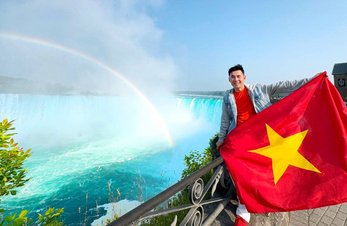 For singer - travel blogger Doan Truong, carrying the Vietnamese flag on his journey to explore five continents has become a persistent habit for many years.