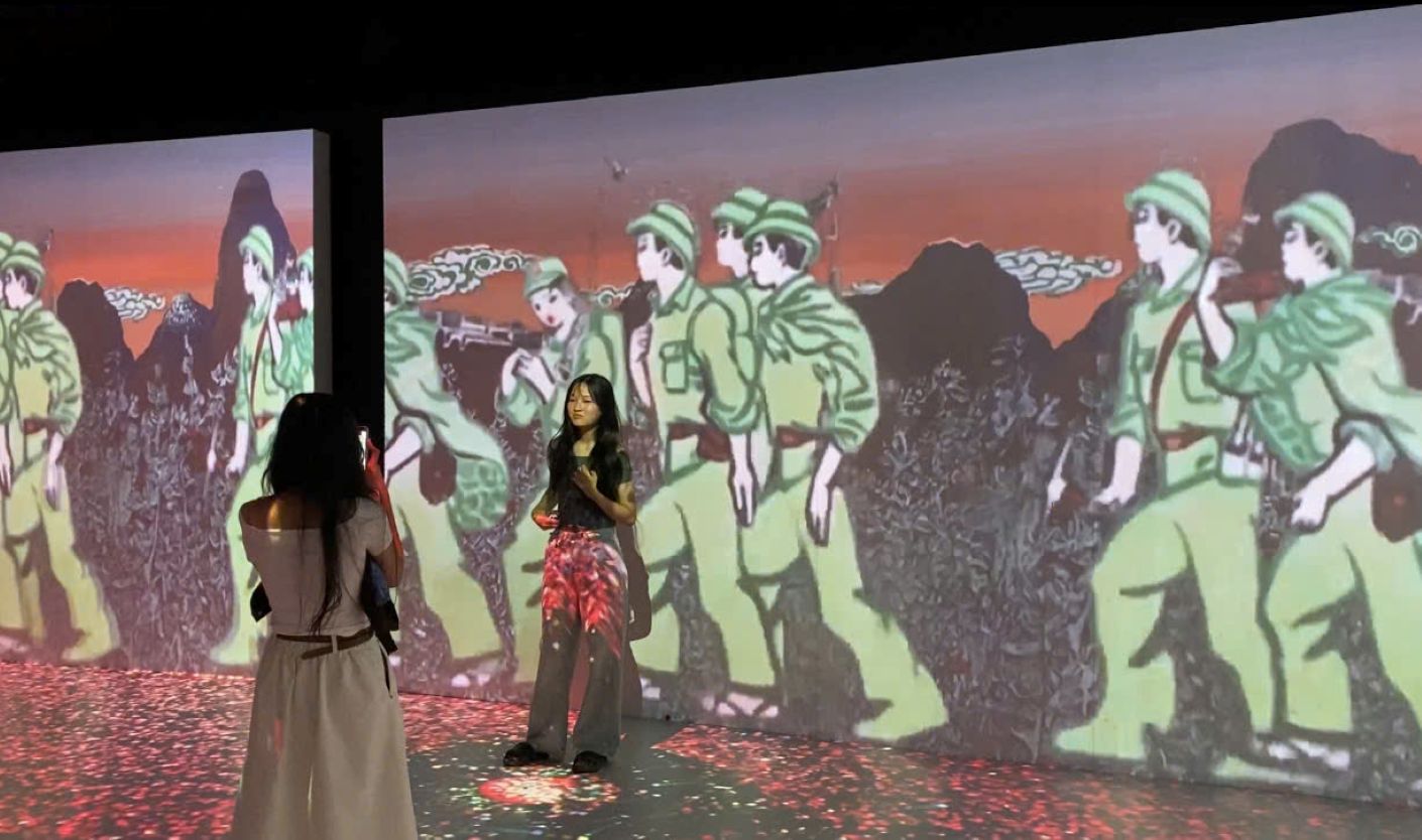 At the National Achievements Exhibition, the 3D mapping painting room attracted a large number of visitors to admire classic works of art.